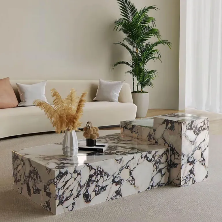 Verwandeln Sie Ihr Wohnzimmer mit dem Couchtisch Grégoire, der italienisches Design mit feinstem bulgarischen Marmor verbindet. Dieser elegante Marmortisch besticht durch markante dunkle Adern, die Tiefe und Charakter verleihen und ihn zu einer unverwechselbaren Ergänzung Ihrer Einrichtung machen. Die einzigartigen Formen unterstreichen nicht nur seine künstlerische Wirkung, sondern bieten auch Vielseitigkeit für verschiedene Designästhetiken.