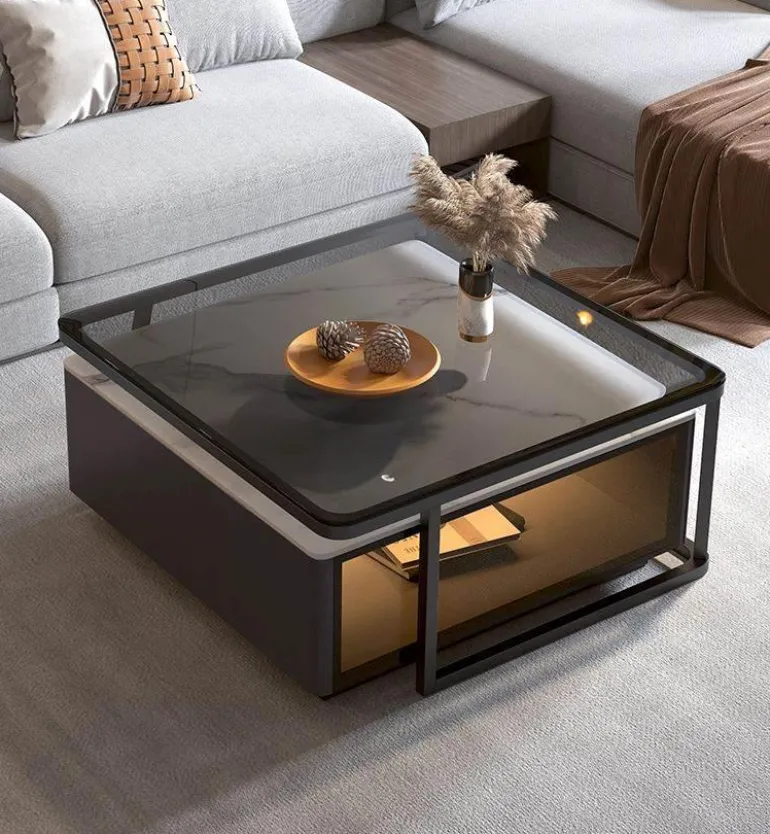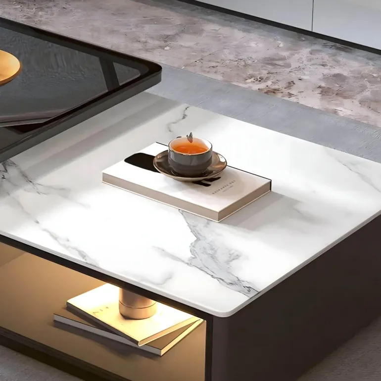 Werten Sie Ihr Wohnzimmer mit dem Seraphina Couchtisch-Set auf – eine perfekte Kombination aus Eleganz und Funktionalität. Der erste Tisch besticht durch eine beeindruckende Schieferplatte, die ihm eine natürliche Note verleiht. Ergänzt wird er durch einen durchdachten, hohlen Sockel für praktische Aufbewahrung, der Ihnen hilft, ein organisiertes und aufgeräumtes Ambiente zu schaffen. Der zweite Tisch mit seinem schlanken Stahlrahmen und der Glasplatte lässt sich leicht über den ersten Tisch schieben und bietet bei Bedarf zusätzlichen Platz, ohne dabei auf Stil zu verzichten.
