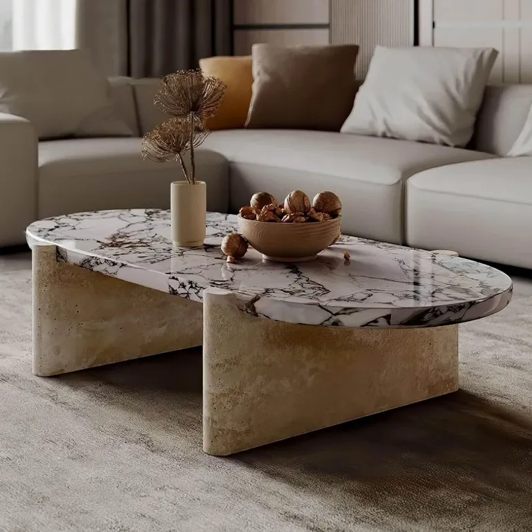 Wir präsentieren den Elisabetta Couchtisch – eine exquisite Kombination aus zeitgenössischem Stil und zeitloser Eleganz. Dieses beeindruckende Stück besticht durch eine atemberaubende Tischplatte aus Calacatta-Marmor, bekannt für ihre filigrane Maserung, die jedem Wohnbereich ein Gefühl von Eleganz verleiht. Die klassischen Beine aus Travertinstein ergänzen den Marmor perfekt, unterstreichen die raffinierte Ästhetik des Tisches und schaffen eine harmonische Mischung aus Designelementen.