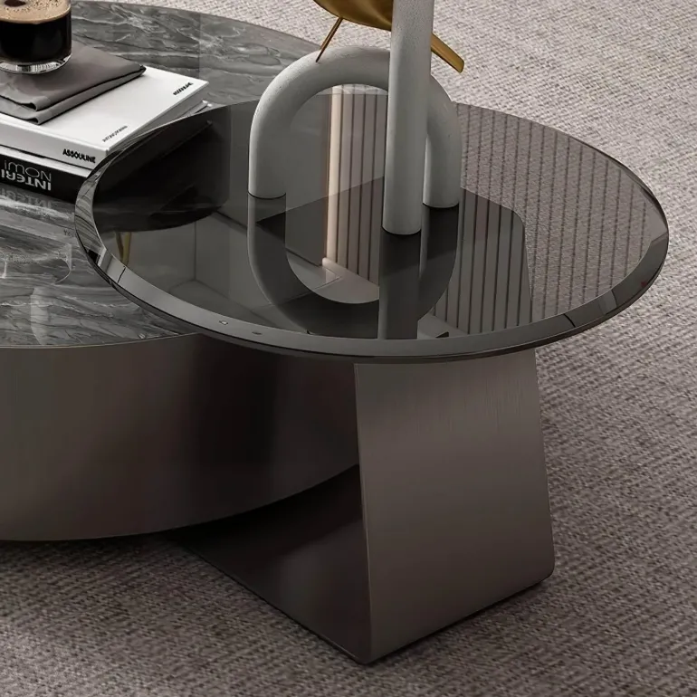 Die importierte Schieferplatte besticht nicht nur durch ihre atemberaubende Optik, sondern ist auch pflegeleicht und hitzebeständig, was sie zu einer praktischen Wahl für den täglichen Gebrauch macht. Der Fuß aus Industriestahl bietet starken Halt und sorgt für jahrelange Haltbarkeit. Der Couchtisch François ist mehr als nur ein Möbelstück. Er spiegelt durchdachtes Design und Qualität wider und unterstreicht die Schönheit und Funktionalität Ihres Zuhauses.