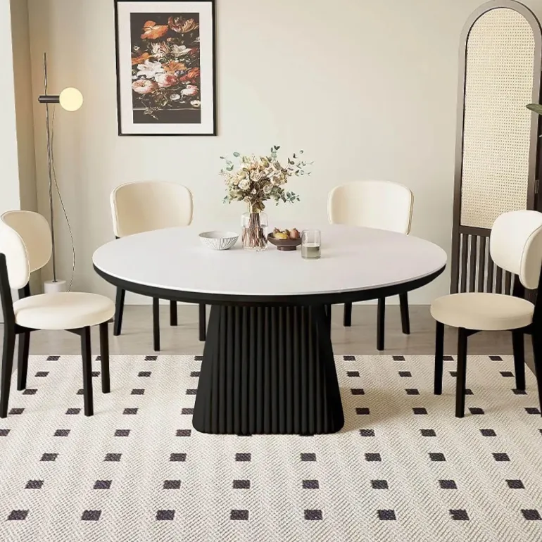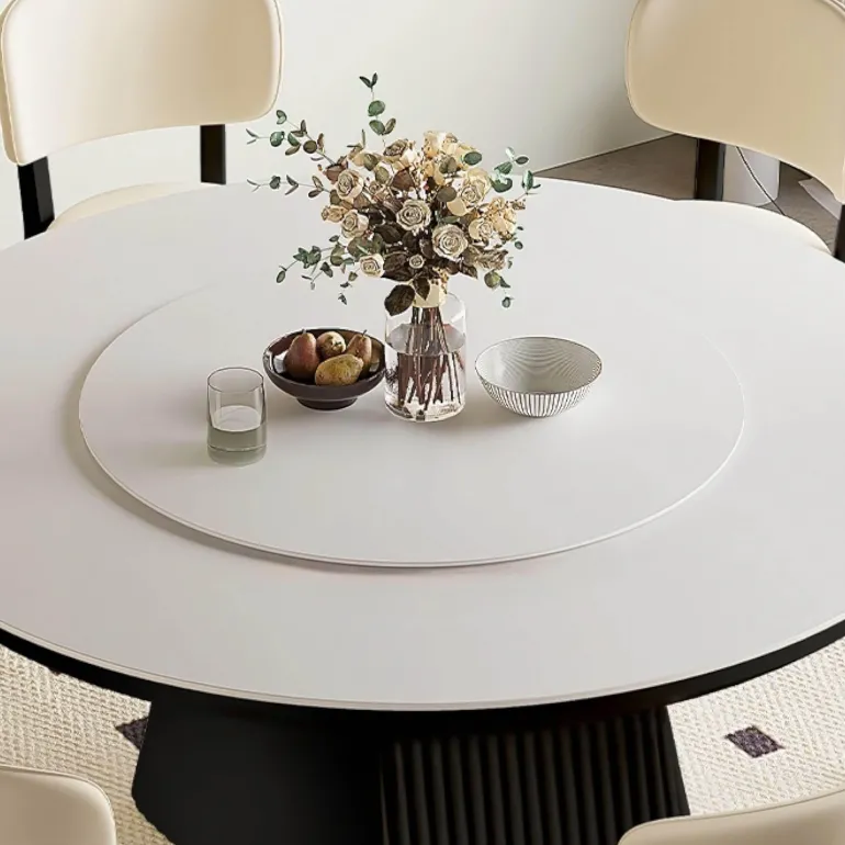 Mit seinen klaren Linien wertet dieser Tisch die Ästhetik Ihres Essbereichs auf, ohne dabei an Stabilität oder Langlebigkeit einzubüßen. Ein innovativer Drehbereich sorgt für vielseitige Funktionalität und ermöglicht Ihnen, den Tisch mühelos an verschiedene Esssituationen anzupassen – egal, ob Sie ein gemütliches Familienessen genießen oder ein geselliges Treffen mit Freunden veranstalten.