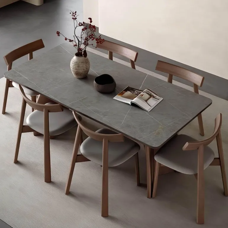 Das markante Zusammenspiel der edlen Holzmaserung und der polierten Steinoberfläche setzt einen edlen Blickfang und unterstreicht die Schönheit jedes Essbereichs. Ob elegante Dinnerpartys oder gemütliche Familienessen – dieser Esstisch steht für Langlebigkeit und zeitloses Design. Er ist die ideale Wahl für alle, die Wert auf edle Handwerkskunst und moderne Ästhetik legen. Er wird Ihr Zuhause über Jahre hinweg bereichern.