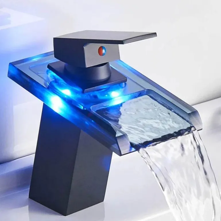 Werten Sie Ihr Badezimmer mit dem stilvollen und modernen Design des LED-Wasserfall-Wasserhahns aus Messing auf. Diese sorgfältig gefertigte Armatur wertet Ihren Raum optisch auf und verfügt über ein faszinierendes LED-Licht, das auf die Wassertemperatur reagiert und Ästhetik und Funktionalität nahtlos vereint. Erleben Sie das wohltuende Gefühl eines sanften Wasserfalls, der eine beruhigende Atmosphäre schafft, und profitieren Sie gleichzeitig von der robusten Messingkonstruktion für lange Haltbarkeit.