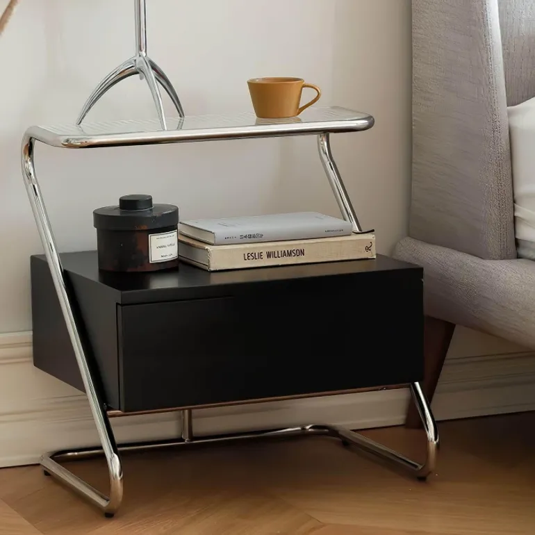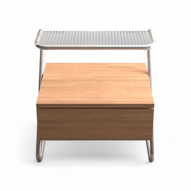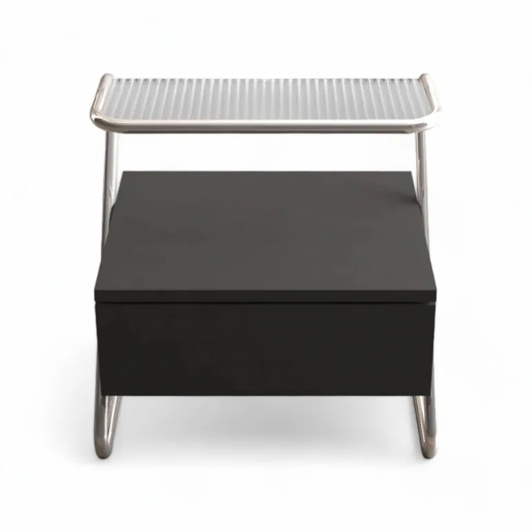 Die durchdachte Schublade und das erhöhte Glasregal bieten praktischen Stauraum für Bücher, Gadgets und persönliche Gegenstände. Diese intelligente Anordnung sorgt dafür, dass alles, was Sie brauchen, griffbereit ist und vereinfacht so Ihre Schlafenszeitroutine.
