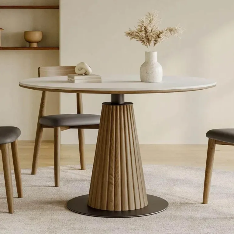 Der robuste Unterbau aus Massivholz und verstärkt mit Kohlenstoffstahl sorgt für Stabilität und bildet einen ansprechenden Kontrast zur Tischplatte. Dieser Tisch eignet sich perfekt für Familienessen und Zusammenkünfte und schafft eine einladende Atmosphäre, wobei die Funktionalität im Vordergrund steht. Mit seiner raffinierten Ästhetik und den langlebigen Materialien ist der Ornella Esstisch durchdacht gestaltet, um Ihr Esserlebnis zu bereichern.
