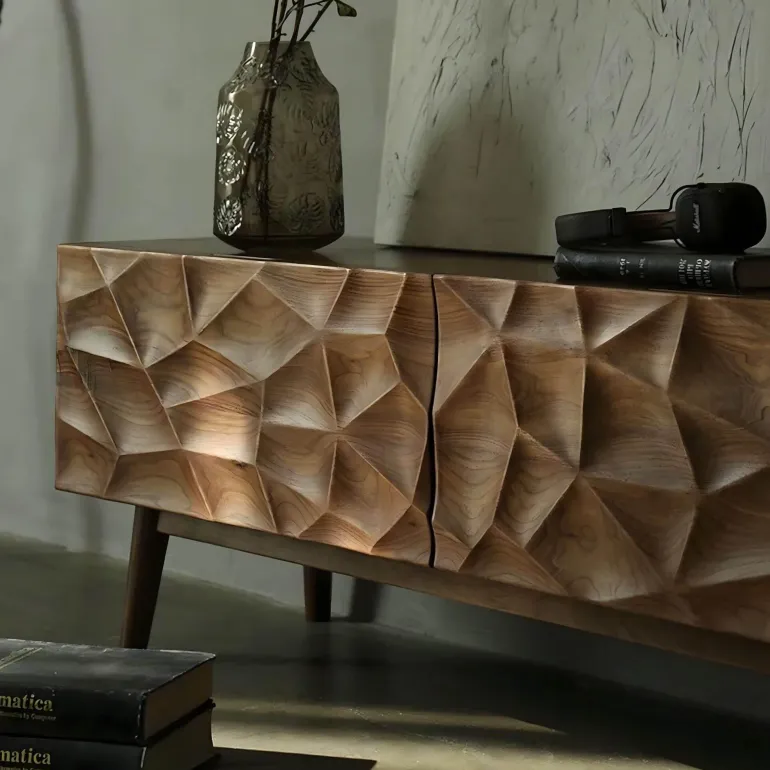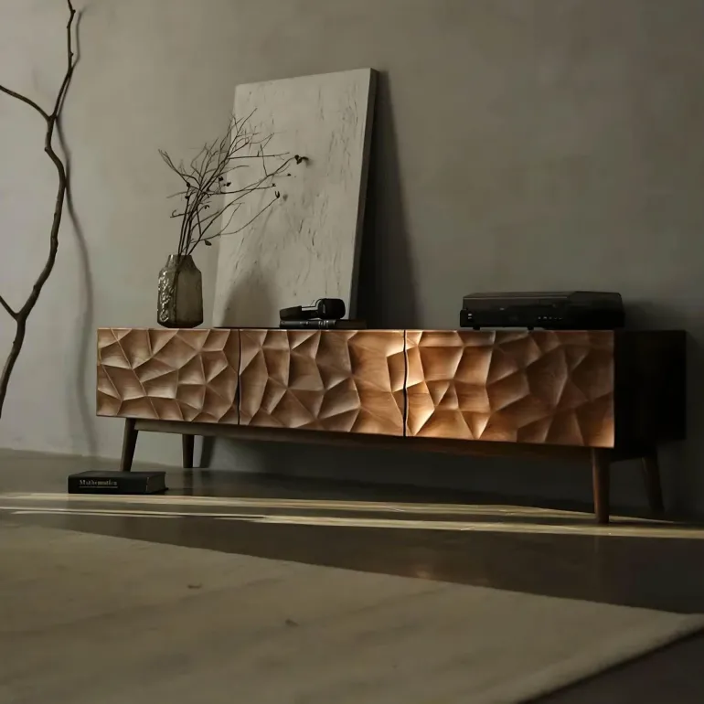 Die Renée-Kollektion verkörpert moderne Eleganz und passt perfekt in jede Wohnkultur. Ihre schlanke Silhouette und die praktischen Funktionen bereichern Ihren Raum und bieten eine stilvolle Lösung für all Ihre Unterhaltungsbedürfnisse. Dieser Schrank erfüllt nicht nur seinen funktionalen Zweck, sondern verleiht Ihrem Wohnambiente auch ein künstlerisches Element und bringt Komfort und Eleganz in Ihr Zuhause.