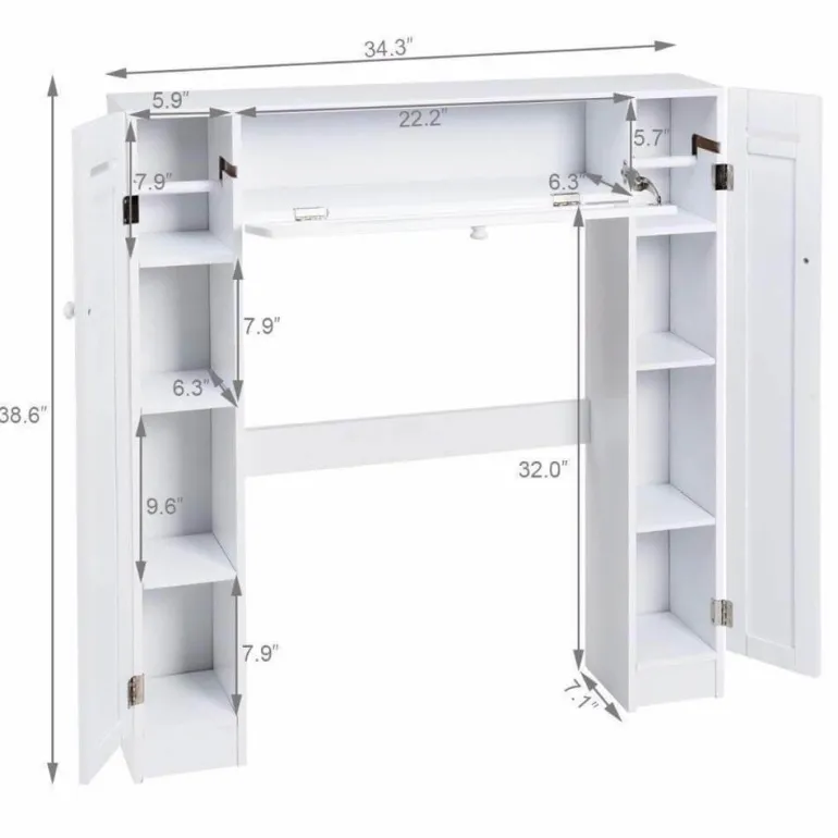 Dieser Schrank aus robustem MDF-Material ist auf Langlebigkeit und Stabilität ausgelegt. Seine strahlend weiße Oberfläche fügt sich nahtlos in jede bestehende Einrichtung ein. Mit den Maßen 87,5 x 18 x 98 cm passt er bequem über die meisten Standard-Toilettenspülkästen und verwandelt oft übersehene Bereiche in wertvolle Ablageflächen für Handtücher, Toilettenartikel und andere Badutensilien.