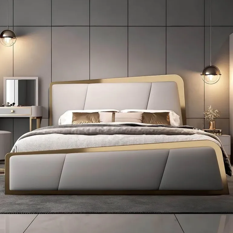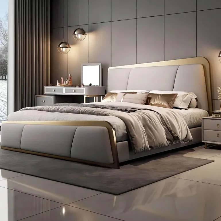 Der robuste Rahmen aus hochwertigen Materialien sorgt für Langlebigkeit und einen Hauch von Eleganz. Das großzügig gepolsterte Kopfteil bietet die perfekte Mischung aus Komfort und Halt und lädt zum Entspannen oder Lesen ein.