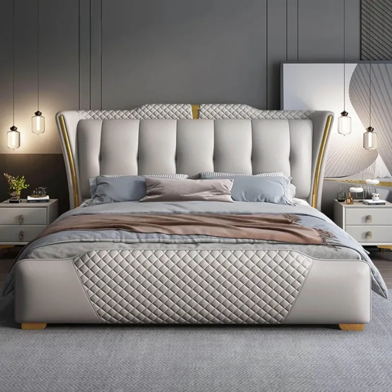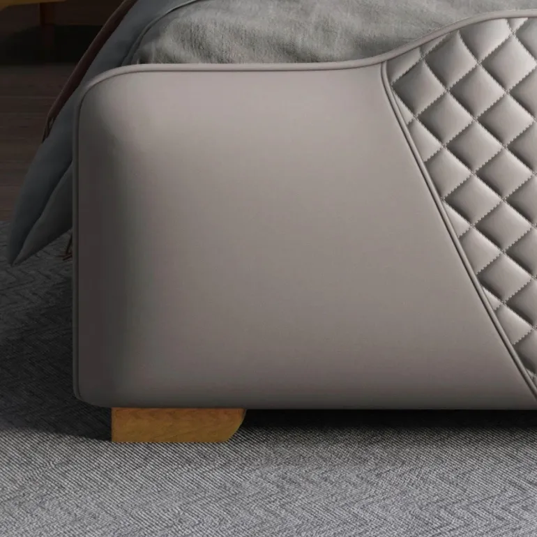 Genießen Sie die Eleganz des Valentin-Bettes, sorgfältig gefertigt aus echtem Nappaleder, bekannt für seine luxuriöse Textur und edle Optik. Das Bett besticht durch sein faszinierendes Rautenmuster und wertet mit seinem zeitlosen Design mühelos die Atmosphäre Ihres Schlafzimmers auf.