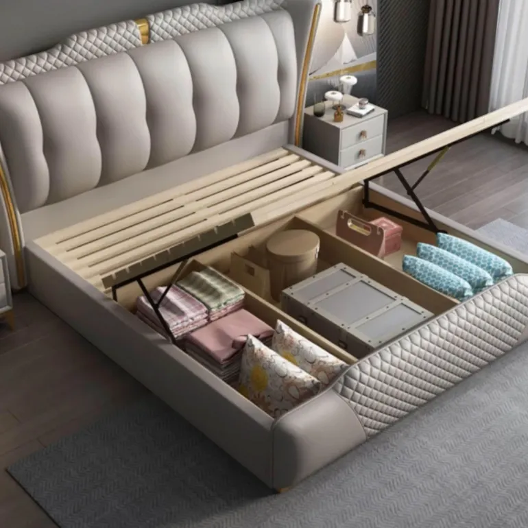 Neben seiner atemberaubenden Ästhetik bietet das Valentin-Bett einen praktischen, aufklappbaren Unterbau, der viel Stauraum bietet, um Ihre Sachen übersichtlich und unsichtbar aufzubewahren. Dieses durchdachte Designelement verleiht Ihrem Schlafzimmer einen klaren und eleganten Look und bietet gleichzeitig Funktionalität. Erleben Sie die perfekte Kombination aus Stil und Funktionalität mit dem Valentin-Bett, bei dem jedes Detail sorgfältig durchdacht ist, um sowohl Komfort als auch optischen Reiz zu bieten.