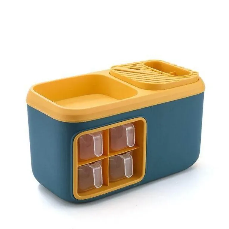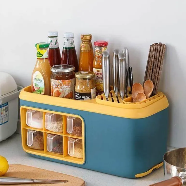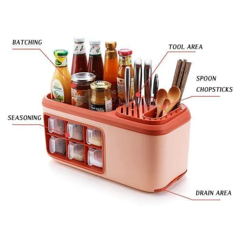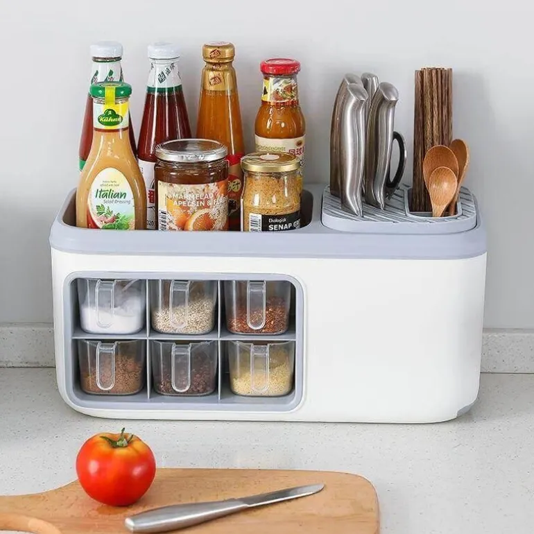 Dieser multifunktionale Küchen-Organizer ist eine hervorragende Lösung, um Ihre Gewürze übersichtlich und leicht zugänglich aufzubewahren. Mit sechs geräumigen Fächern bietet er Platz für Zucker, Salz und verschiedene Gewürze und sorgt so für Ordnung in der Küche. Die transparente, abnehmbare Gewürzbox ermöglicht Ihnen einen schnellen Zugriff auf Ihre Lieblingsgewürze und macht das Kochen effizienter und angenehmer.