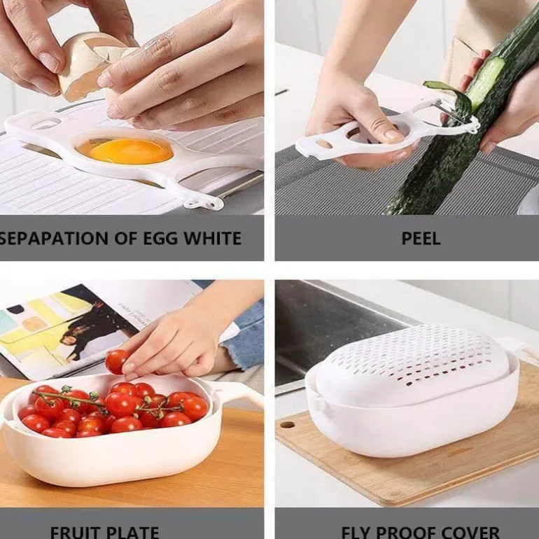 Sicherheit steht bei diesem Gemüsehobel an erster Stelle; sein innovatives Design schützt Ihre Hände vor versehentlichen Schnitten und Verletzungen bei der Zubereitung. Nach dem Schneiden können Sie Ihr Gemüse mühelos durch das integrierte Abflusssystem abspülen, was eine schnelle und effiziente Reinigung ermöglicht.