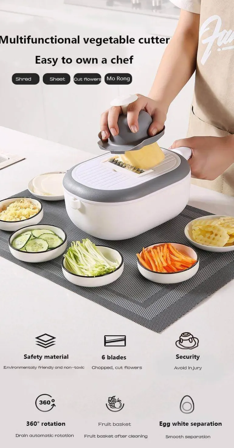 Verwandeln Sie Ihre Essenszubereitung mit unserem multifunktionalen Gemüseschneider, der Ihre Küchenarbeit optimiert. Hergestellt aus umweltfreundlichen Materialien, ist dieses unverzichtbare Werkzeug ungiftig und sicher für den täglichen Gebrauch. Mit sechs austauschbaren Klingen erfüllt er alle Ihre Schneide- und Raspelanforderungen und ist somit eine unverzichtbare Ergänzung für Ihr kulinarisches Werkzeugset.
