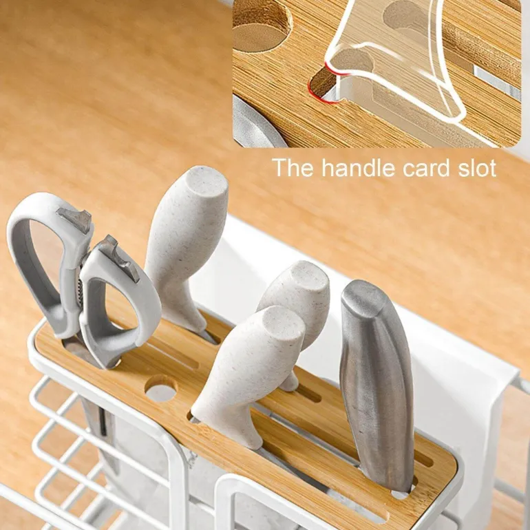 Dieses Produkt bietet ein innovatives Mehrzweckdesign mit integrierter Aufbewahrung für Küchenutensilien und ist somit eine praktische All-in-One-Lösung. Von Messern und Schneidebrettern bis hin zu Topfdeckeln, Essstäbchen, Löffeln und Lappen – alles hat seinen Platz und ist leicht zugänglich und übersichtlich.