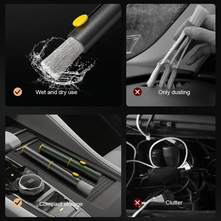 Wir präsentieren den Car Cleaning Wizard, ein vielseitiges und multifunktionales Werkzeug, das speziell für die effektive Autopflege entwickelt wurde. Dieses kompakte und elegante Zubehör vereinfacht die Pflege eines sauberen und ordentlichen Fahrzeugs und ist ein unverzichtbarer Begleiter für jeden Autobesitzer, der seine Reinigungsroutine verbessern möchte.