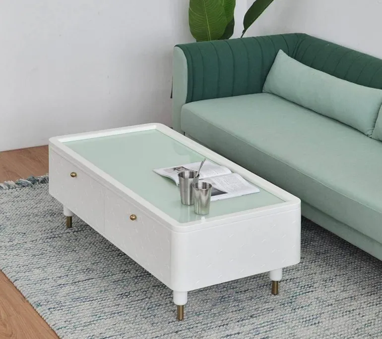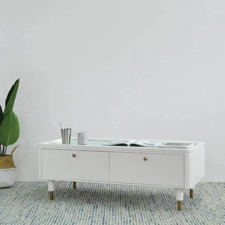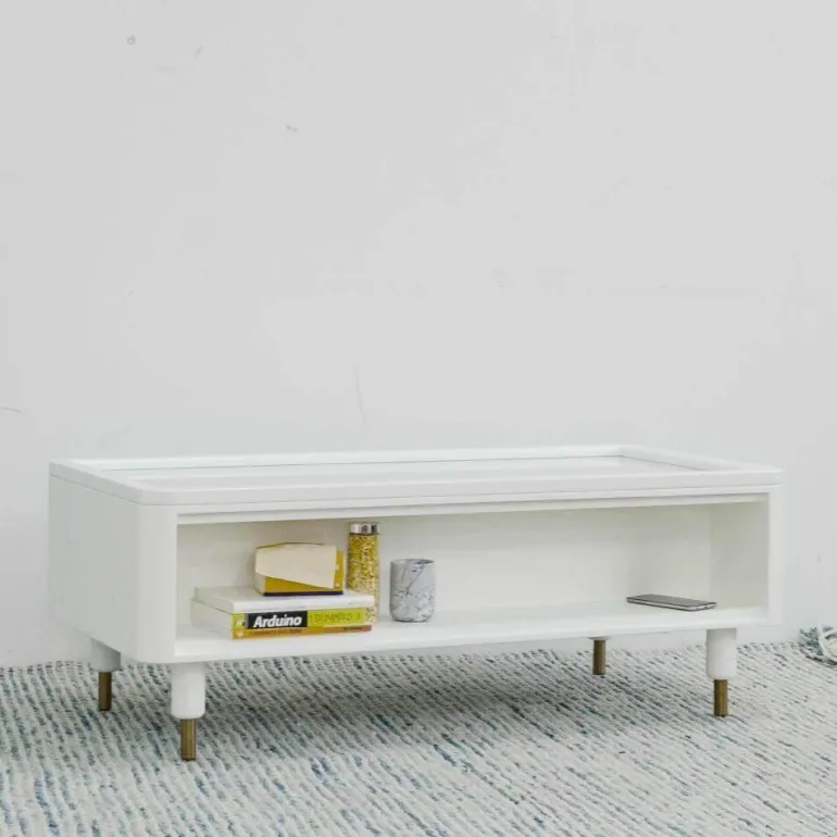 Dieser in China gefertigte Couchtisch strahlt moderne Ästhetik und Funktionalität aus. Obwohl er weder Rollen noch individuelle Anpassungsmöglichkeiten bietet, passt er dank seiner eleganten Optik und seines praktischen Designs perfekt in jedes Zuhause. Genießen Sie die Kombination aus Stil und Funktionalität in Ihrem Wohnzimmer mit diesem sorgfältig gefertigten Möbelstück.