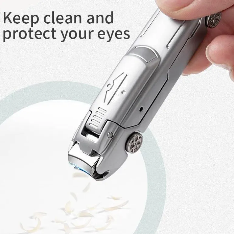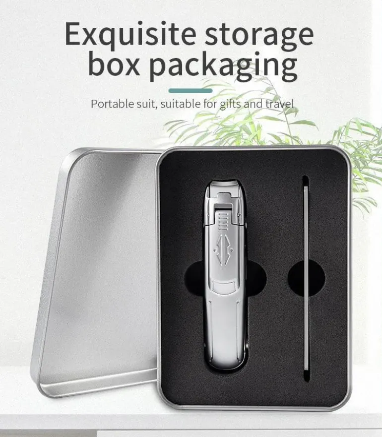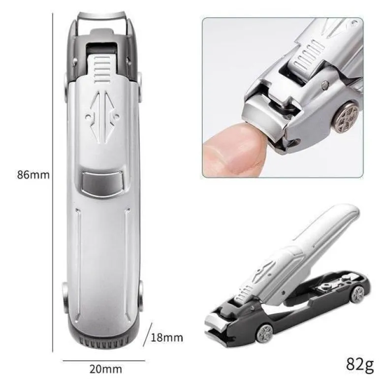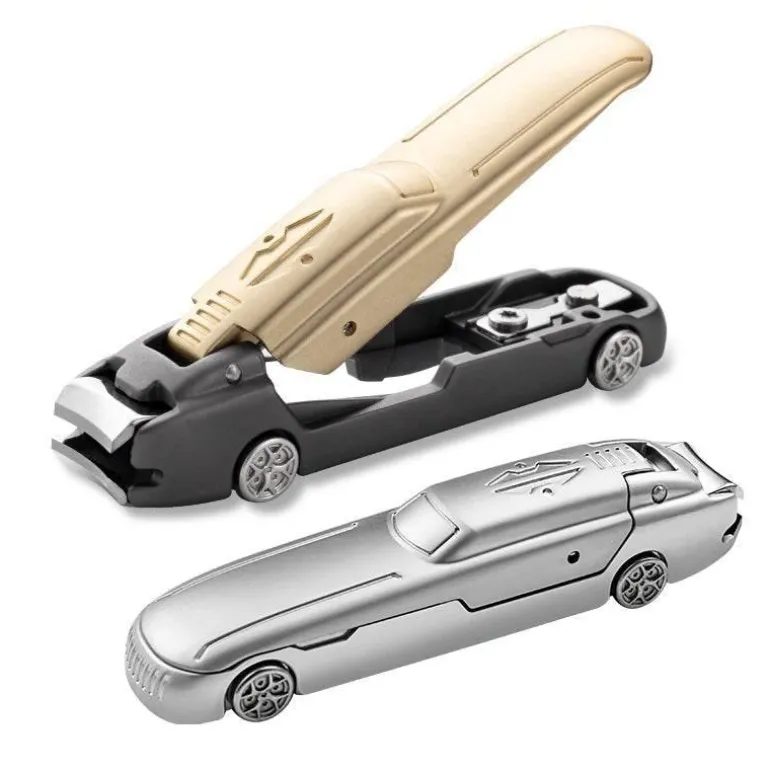 Dank seiner gebogenen Klingen eignet er sich sowohl für Fuß- als auch für Fingernägel und ist somit eine unverzichtbare Ergänzung Ihrer Pflegeroutine. Das spritzwassergeschützte Design sorgt für Ordnung und schützt Ihre Augen während der Anwendung, während die charmante Automobilform für stilvolles Flair sorgt. Dieser Nagelknipser eignet sich sogar als dekoratives Element für Ihr Auto oder Ihren Schminktisch.