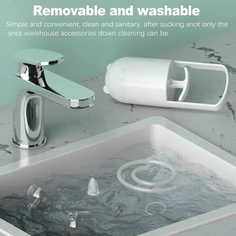 Sicherheit und Komfort stehen beim Design im Vordergrund. Die abgerundete Düsenspitze verhindert, dass das Gerät in die Nasenlöcher Ihres Babys eindringt oder die empfindlichen Nasengänge reizt. Positionieren Sie den Sauger einfach in der Nähe der Nase Ihres Babys, um effektiv und ohne Beschwerden abzusaugen.