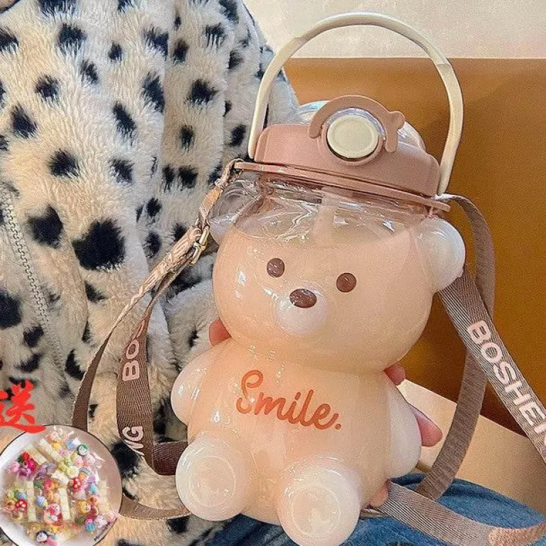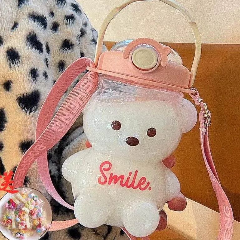 Im Paket enthalten ist eine süße Bären-Wasserflasche mit integriertem Strohhalm, die Sie auf all Ihren Reisen begleitet.