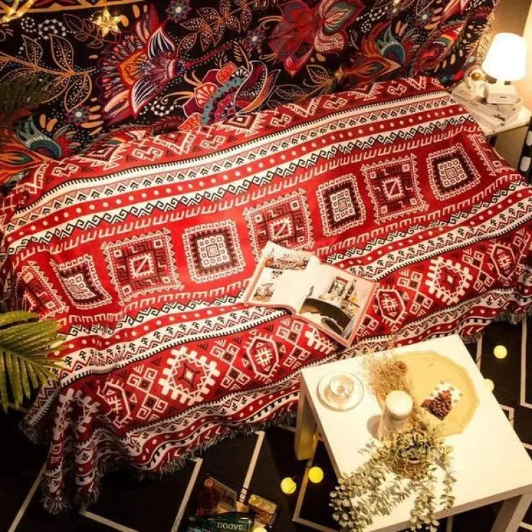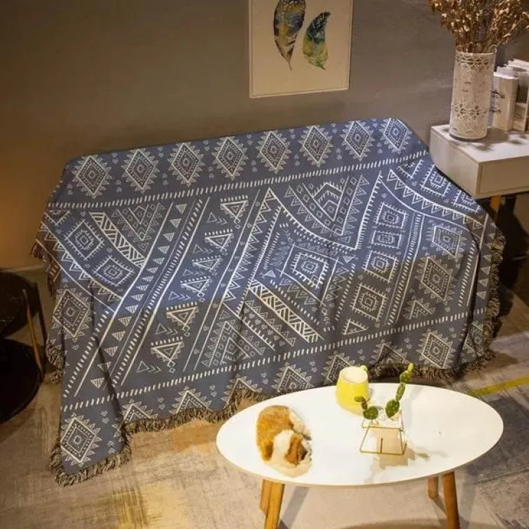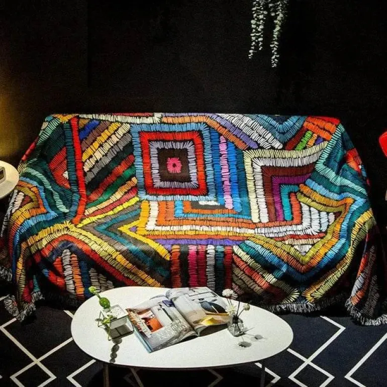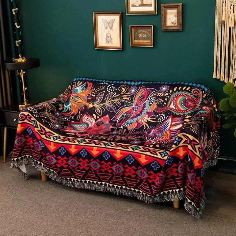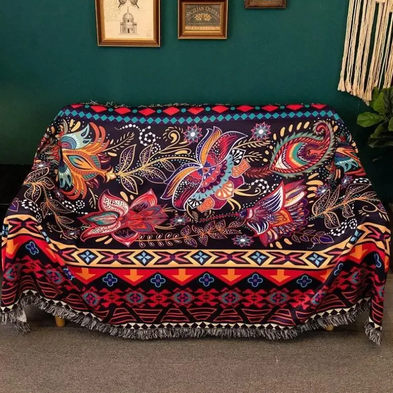 Verleihen Sie Ihrem Zuhause mit der wasserdichten Nordic Bohemia Sofadecke einen stilvollen und praktischen Touch. Diese Decke aus hochwertigem 100 % Polyester besticht durch ihren lebendigen 3D-Retro-Ethno-Print und ist ein Blickfang für Ihren Sessel oder Ihr Sofa.