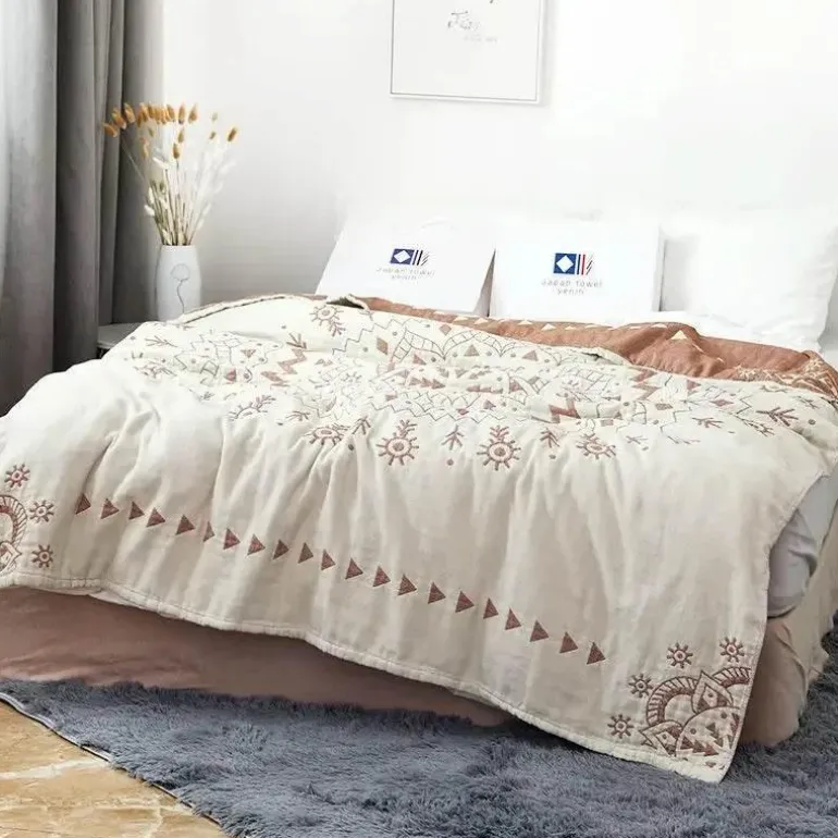 Entdecken Sie die Nordic Cotton Throw Blanket, eine vielseitige und atmungsaktive Steppdecke, die Ihren Wohnräumen einen Hauch von Eleganz verleiht. Diese wunderschön gefertigte Decke aus 100 % hochwertiger Baumwolle ist ideal, um den Komfort und Stil Ihres Schlafzimmers oder Wohnzimmers zu steigern.