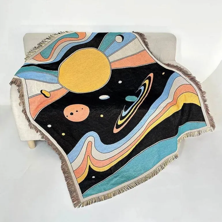 Wir präsentieren die Nordic Boho Flower Jacquard Nap Bed Cover – eine stilvolle und elegante Ergänzung für Ihre Wohnkultur. Diese wunderschön gestaltete Decke aus einer hochwertigen Polyester-Baumwoll-Mischung bietet Komfort und Ästhetik zugleich.
