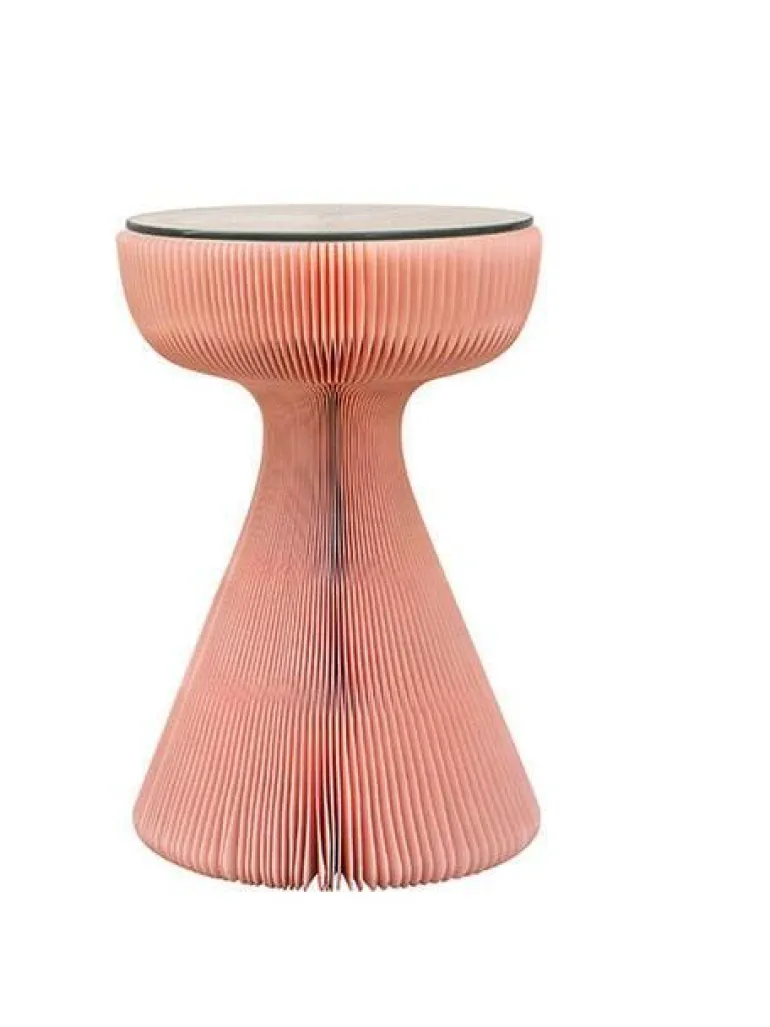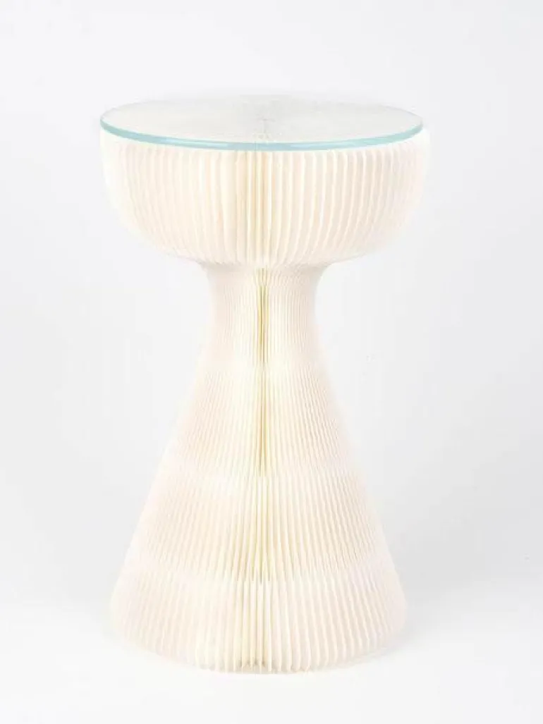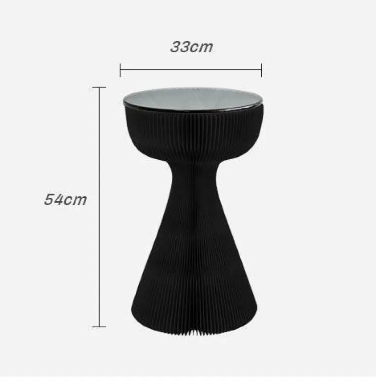 Dieser Tisch aus strapazierfähigem Kraftpapier mit gehärteter Glasplatte bietet eine einzigartige Kombination aus Robustheit und Stil. Die runde Form wirkt einladend und funktional und fügt sich nahtlos in jeden Raum ein. Mit einer Größe von 54 x 33 cm (21 x 12,9 Zoll) und einer 8 mm dicken Oberfläche aus gehärtetem Glas vereint er Ästhetik und Funktionalität.