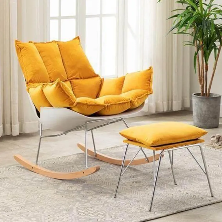 Entdecken Sie den modernen nordischen Schaukelstuhl, eine elegante Ergänzung für Ihren Wohnraum. Sein minimalistisches Design und die moderne Ästhetik vereinen Komfort und Stil harmonisch und machen ihn zur perfekten Ergänzung für jedes moderne Zuhause. Der Stuhl verfügt über stabile Handläufe, die hervorragenden Halt bieten und Ihnen beim Entspannen eine sanfte Schaukelbewegung ermöglichen.