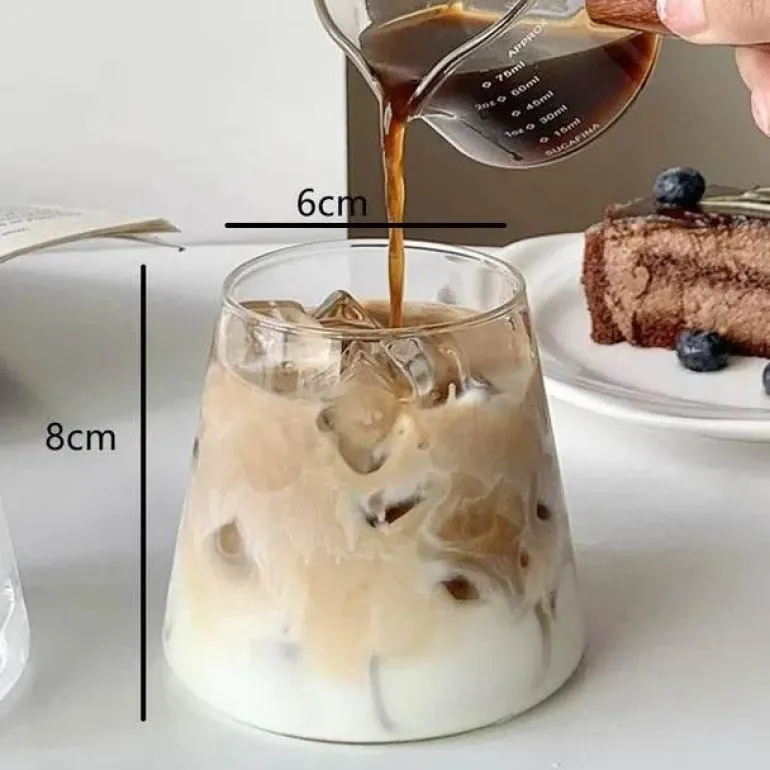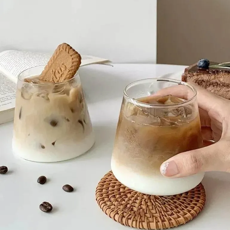 Das transparente Glas bringt die leuchtenden Farben Ihrer Getränke wunderschön zur Geltung und verleiht Ihrem Geschirr einen Hauch von Luxus. Dieses umweltfreundliche Set ist ideal für den Genuss Ihrer Lieblingsweine oder Eiskaffees. Diese Becher lassen sich mühelos vom Servieren von Getränken mit Deckel und Strohhalm zum alltäglichen Trinkgefäß umfunktionieren und sind ebenso funktional wie stilvoll.