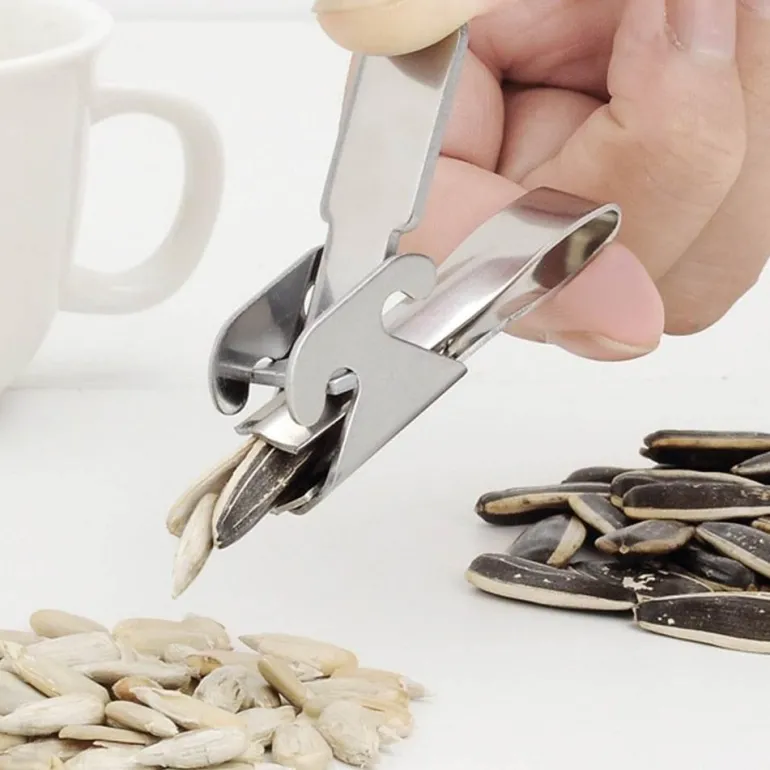 Dieser Nussknacker aus robustem Edelstahl ist langlebig und in zwei Größen erhältlich: Die größere Größe (8 cm x 8 cm x 3 cm) eignet sich ideal für herkömmliche Nüsse, die kleinere (6 cm x 5 cm x 2,5 cm) perfekt für verschiedene Melonenkerne. Die elegante Silberoberfläche verleiht Ihren Küchenutensilien einen Hauch von Eleganz.