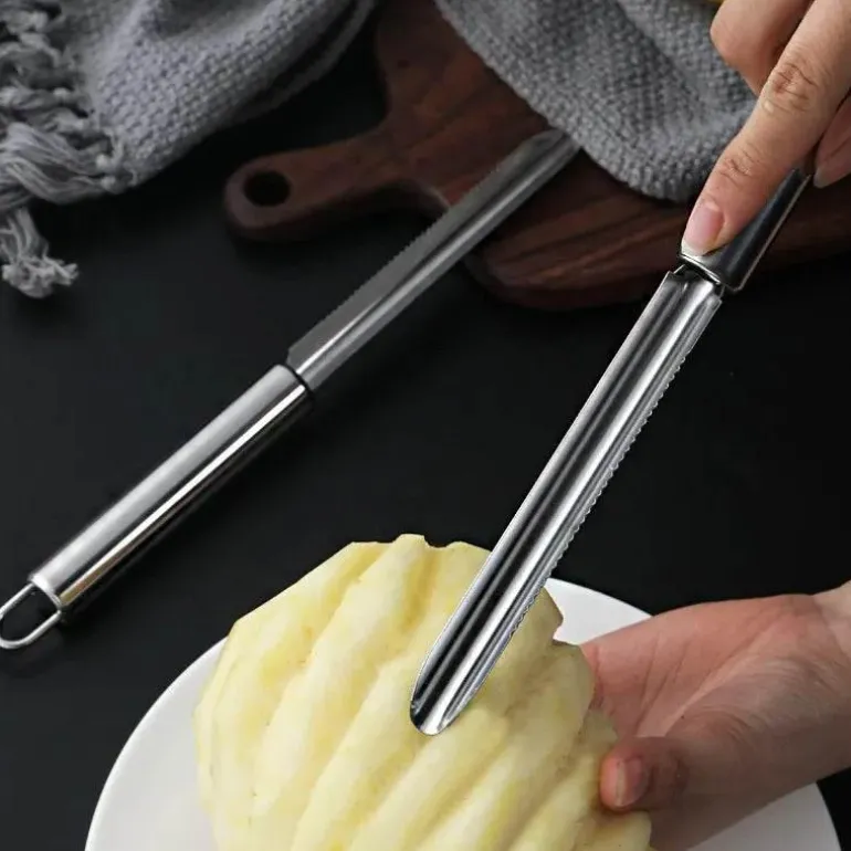 Ein herausragendes Werkzeug dieser Kollektion ist der Ananasschneider, der speziell zum einfachen Entkernen und Schälen von Ananas entwickelt wurde. Mit diesem vielseitigen Gerät können Sie diese tropische Frucht ganz ohne die bei herkömmlichen Methoden übliche Unordnung genießen. Erleben Sie sanftes, präzises Schneiden, das Ihre Obstzubereitung erleichtert.