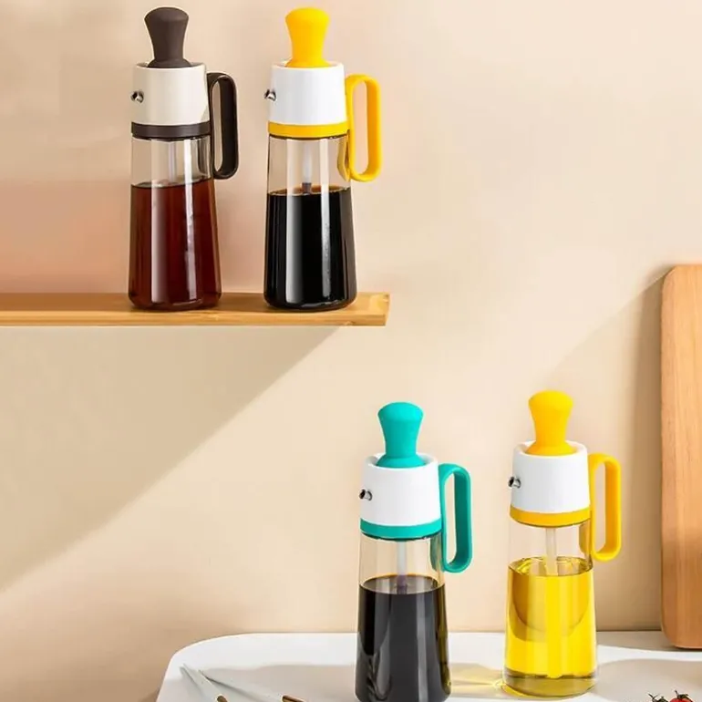 Jede Ölspenderflasche verfügt über einen auslaufsicheren Silikondichtring am Deckel. Dieser sorgt für einen sicheren, luftdichten Verschluss und verhindert, dass auslaufende Flüssigkeit, Staub und Feuchtigkeit die Frische Ihrer Gewürze beeinträchtigen. Das innovative Press-Design ermöglicht eine präzise Kontrolle der Ölabgabe. Drücken Sie einfach auf den Flaschendeckel, um die Dosierung anzupassen.