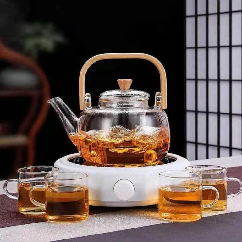 Erhöhen Sie Ihr Teeerlebnis mit unserer hitzebeständigen Teekanne im meditativen orientalischen Stil. Diese sorgfältig aus hochwertigem Glas gefertigte Teekanne ist für hohe Temperaturen ausgelegt, sodass Ihr Tee sein intensives Aroma behält, ohne verbrannt oder bitter zu schmecken. Das unverwechselbare orientalische Design der Teekanne verleiht jeder Wohnkultur eine elegante Ästhetik und macht sie sowohl zu einem funktionalen als auch zu einem dekorativen Stück. Sie ist eine ausgezeichnete Wahl für Teeliebhaber oder eine wunderbare Belohnung für sich selbst.