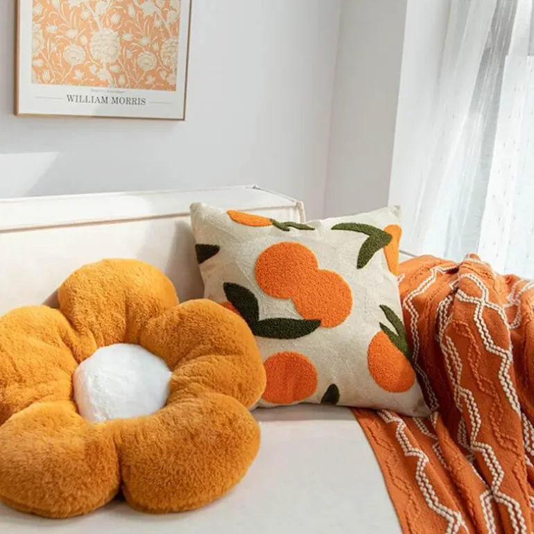 Kombinieren Sie diesen Kissenbezug mit unserem Blumendeko-Teppich und unserem Wandbehang mit gewebten Blätterquasten für einen einheitlichen und charmanten Look in Ihrem Zuhause.