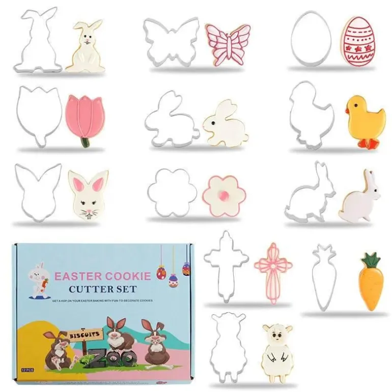 Verleihen Sie Ihren Backwaren mit dieser Kollektion lebendige Farben und fantasievolle Formen und beeindrucken Sie Ihre Familie und Freunde mit wunderschön gestalteten Keksen und Kuchen, die die Essenz der Osterzeit zelebrieren.