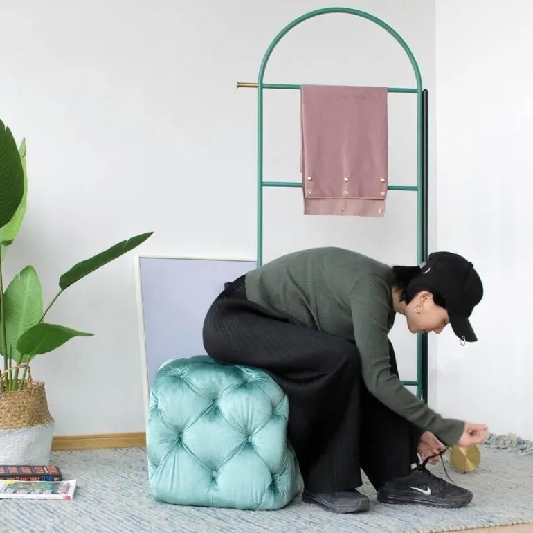 Wir präsentieren unseren modernen Samthocker – eine elegante Ergänzung für Ihr Wohnzimmer. Dieser stilvolle Fußhocker ist nicht nur ein vielseitiger Akzent für Ihr Zuhause, sondern ergänzt auch perfekt eine minimalistische Ästhetik. Mit den Maßen 40 x 40 x 40 cm fügt sich sein kompaktes Design nahtlos in jeden Raum ein und bietet Komfort und Stil zugleich.