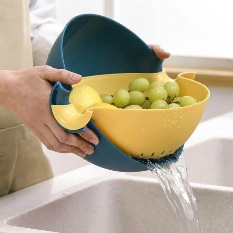 Entdecken Sie die Pastel Double Drain Basket Bowl, einen formschönen Obsthalter aus Kunststoff, der Stil und Funktionalität vereint. Dieses vielseitige Küchensieb zeichnet sich durch sein einzigartiges, ausgehöhltes Design aus, das ein effektives Abtropfen und eine praktische Wasserspeicherung ermöglicht und sich somit perfekt zum Waschen und Servieren von Obst und Gemüse eignet.