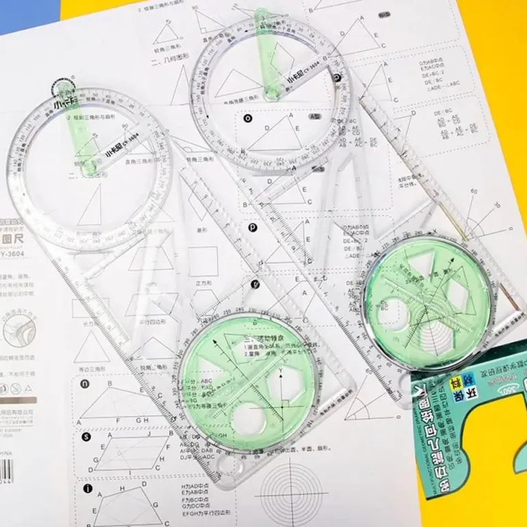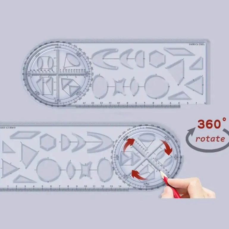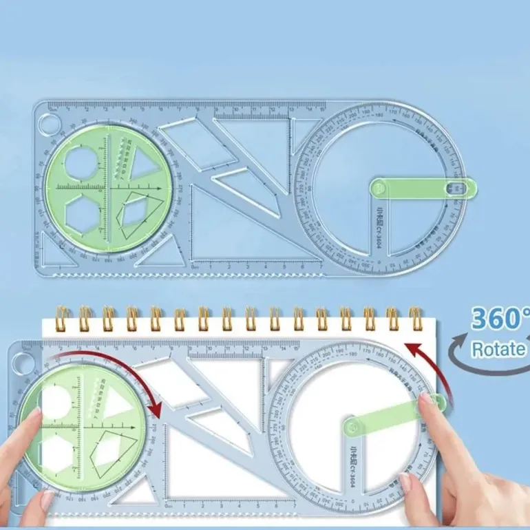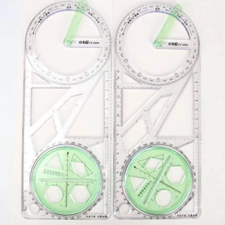 Dieses vielseitige geometrische Zeichenwerkzeug ist ideal für Schüler, Künstler und Profis. Es fungiert als Lineal und Winkelmesser und verfügt über eine Bleistiftzirkelfunktion und bietet umfassenden Nutzen für eine Vielzahl von Aufgaben.