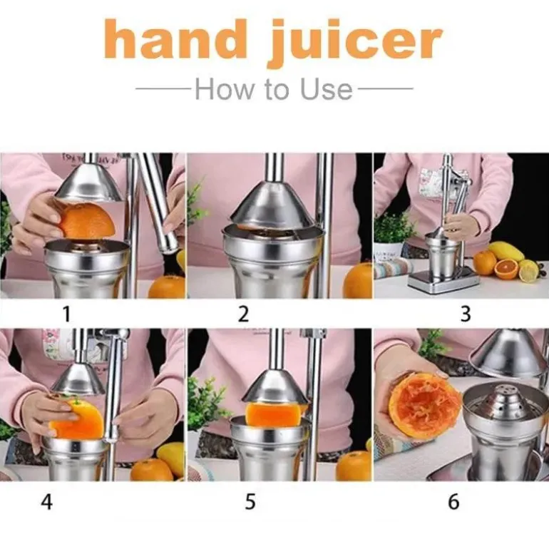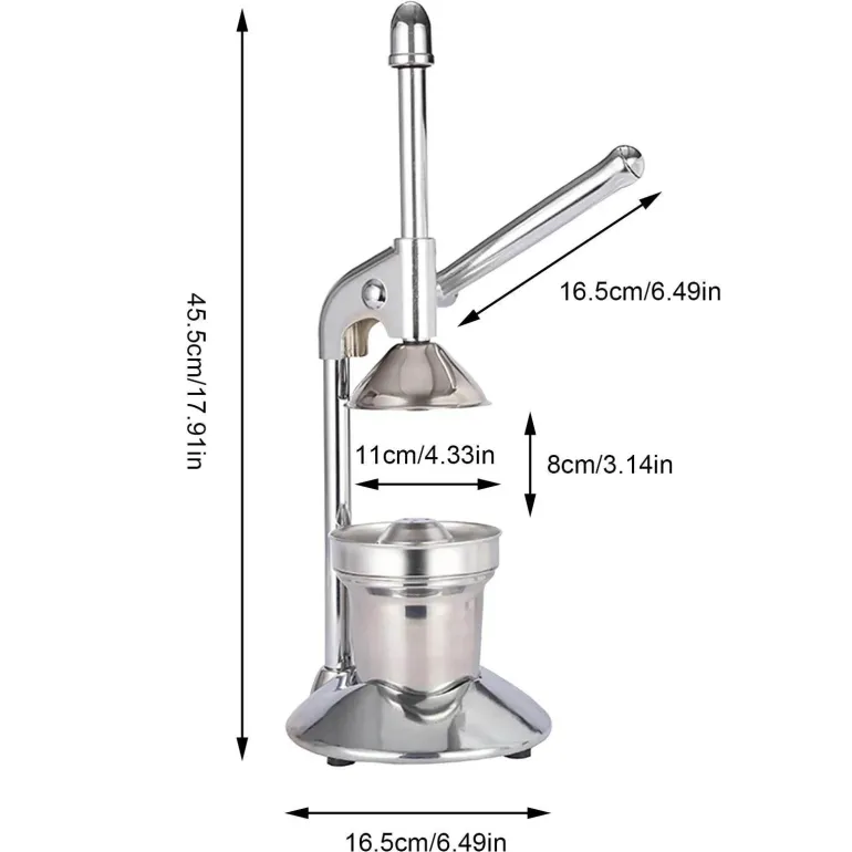 Erleben Sie den Komfort von frischem Saft mit unserer professionellen manuellen Fruchtpresse, einem praktischen Gerät für müheloses Entsaften verschiedener Früchte. Hergestellt aus robustem Edelstahl verspricht diese Saftpresse Langlebigkeit und zuverlässige Leistung. Die durchdachte Zitruspresse eignet sich für eine Vielzahl von Obstgrößen, darunter Zitronen, Limetten, Orangen, Grapefruits, Äpfel und Ananas.
