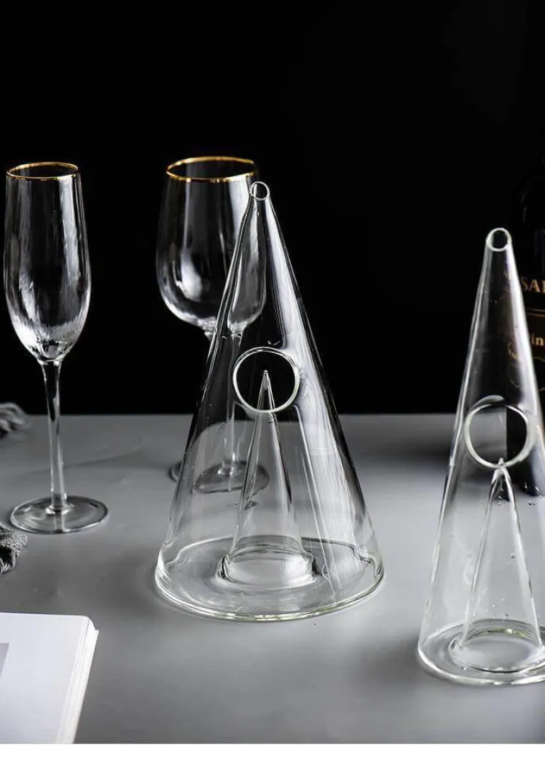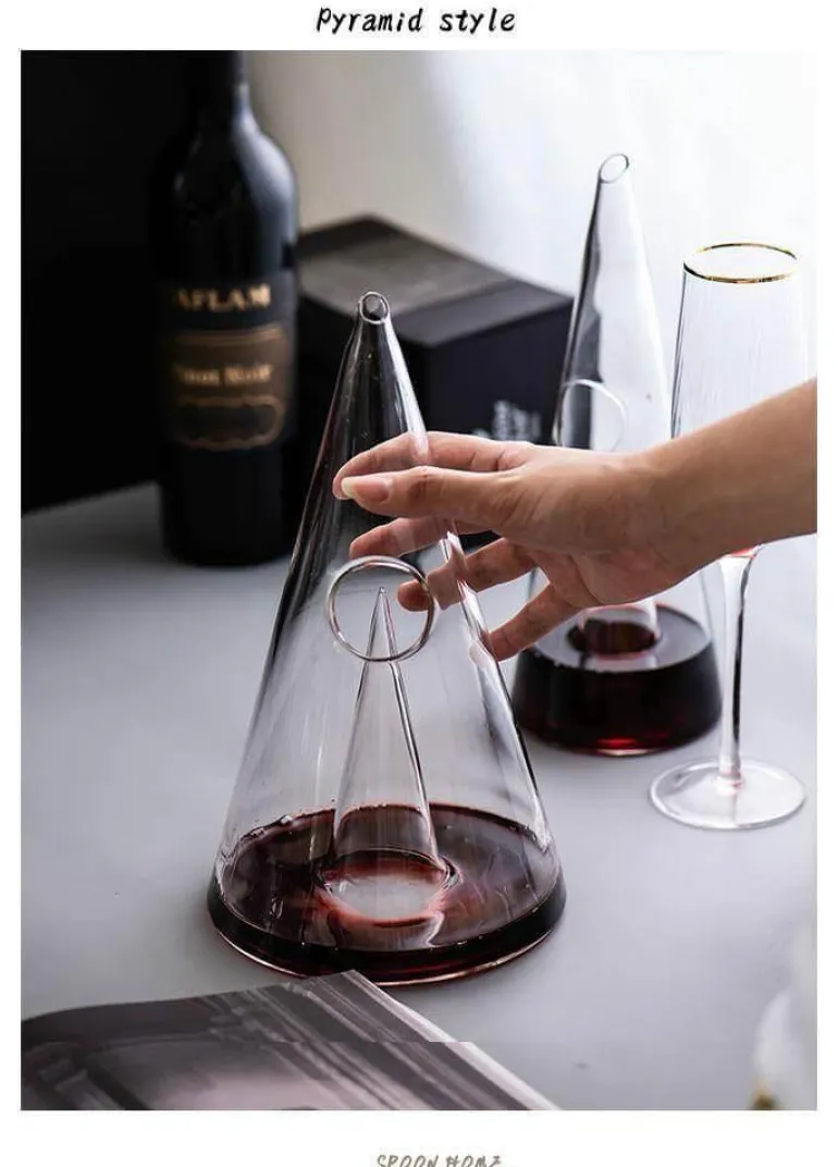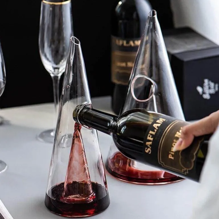 Entdecken Sie das raffinierte Design unserer Pyramiden-Weinkaraffe aus Glas – ein unverzichtbares Accessoire für Ihren Weingenuss. Die minimalistische und zugleich auffällige Pyramidenform aus kristallklarem Glas ermöglicht eine mühelose Einhandbedienung und verbindet Funktionalität mit Ästhetik. Die Hochtemperatur-Satinierung und die Anti-Rutsch-Beschichtung sorgen für einen angenehmen Griff und verleihen dem Dekanter seinen eleganten Charme.