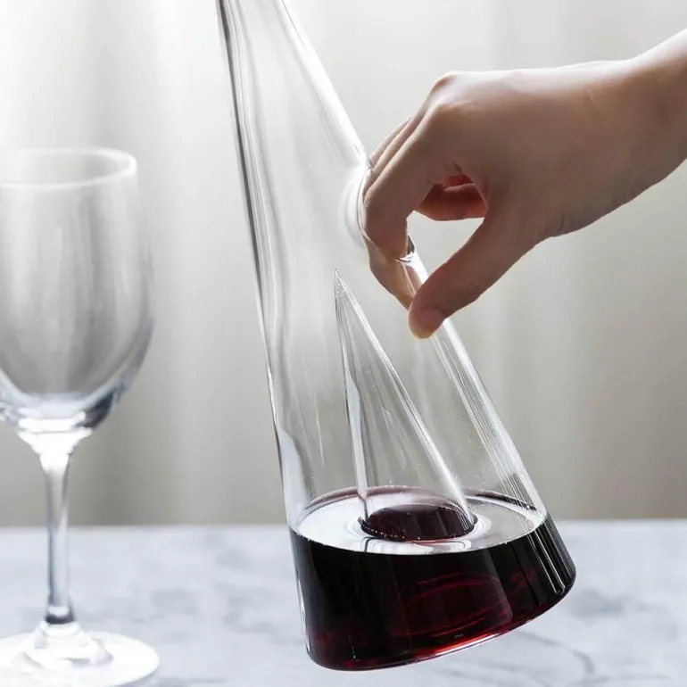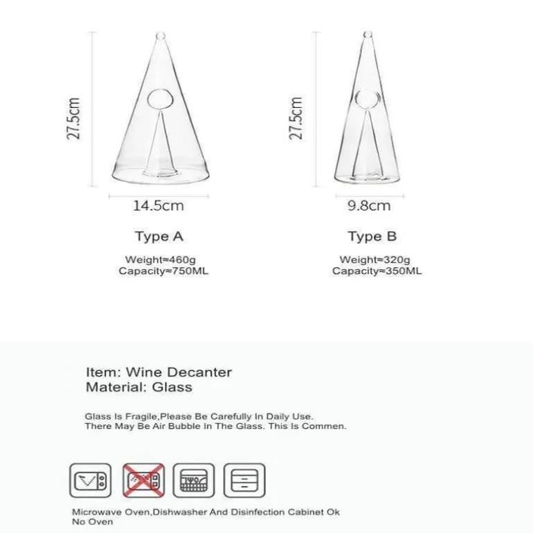 Diese Karaffe bietet ein großzügiges Fassungsvermögen und bietet bequem Platz für eine Weinflasche in Standardgröße. Der breite Boden sorgt für maximale Sauerstoffzufuhr und eine effiziente Belüftung für ein hervorragendes Geschmackserlebnis.