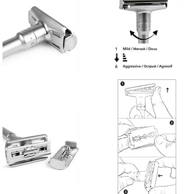 **Paket beinhaltet:** 1 x verstellbarer klassischer Rasierhobel mit zwei Klingen.