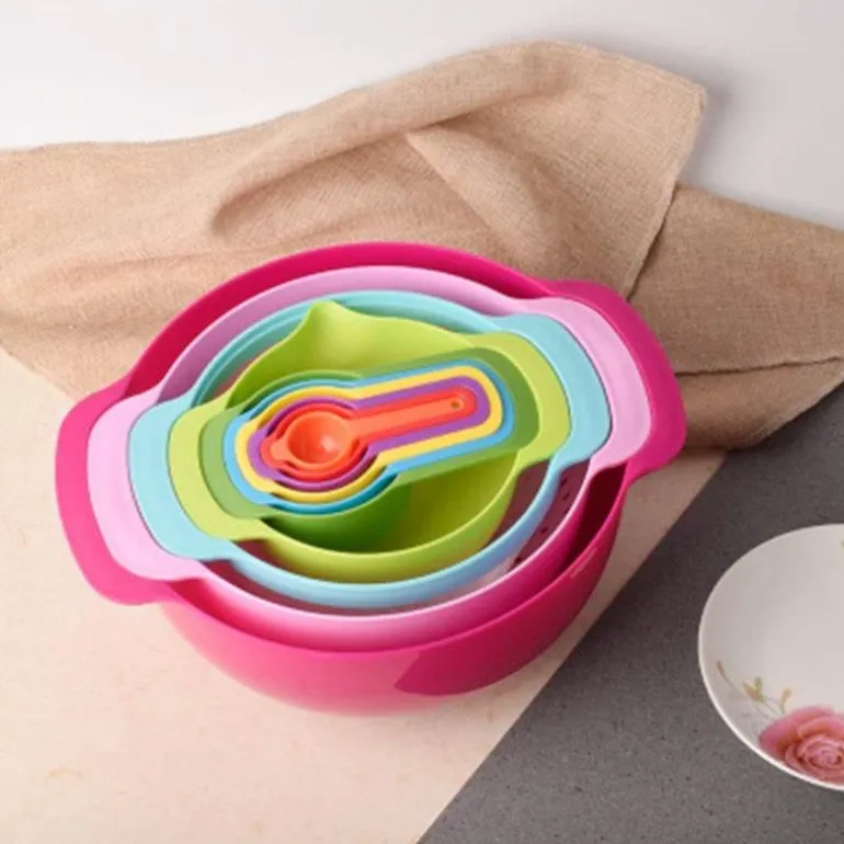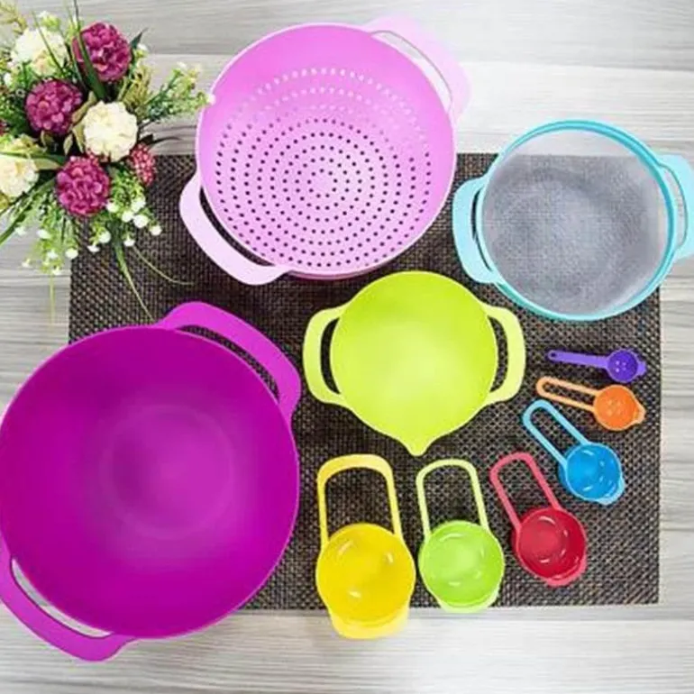 Dieses Küchenset aus lebensmittelechtem PP-Kunststoff ist BPA-frei und ungiftig und sorgt für einen sicheren Einsatz in Ihrem Zuhause. Die Schüsseln sind langlebig und widerstandsfähig gegen tägliche Abnutzung und somit zuverlässige Begleiter für Ihre täglichen Kochaufgaben. Für zusätzlichen Komfort sind alle Teile spülmaschinenfest, was die Reinigung vereinfacht.