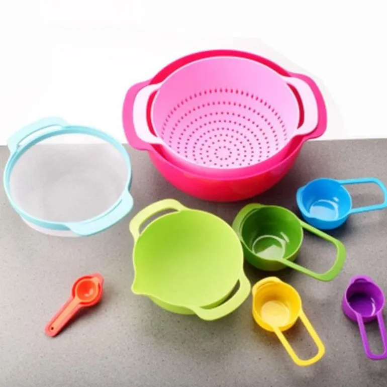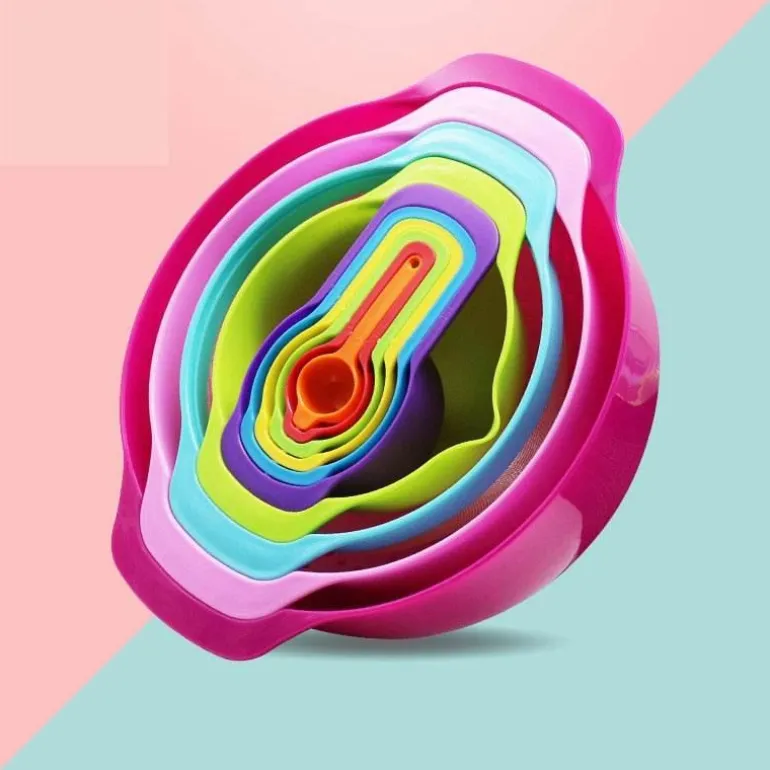 1 x multifunktionales, stapelbares Küchenschüssel-Set in Regenbogenfarben.