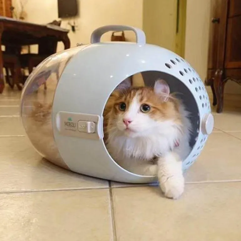 Diese tragbare Haustier-Reisekapsel ist fachmännisch aus hochwertigem ABS-Material gefertigt und bietet Komfort, Bequemlichkeit und Sicherheit für Ihre geliebten Katzen und kleinen Hunde. Diese speziell auf die Bedürfnisse Ihres Haustieres zugeschnittene Transportbox bietet eine gemütliche und atmungsaktive Umgebung und ist somit eine praktische Wahl für unterwegs.