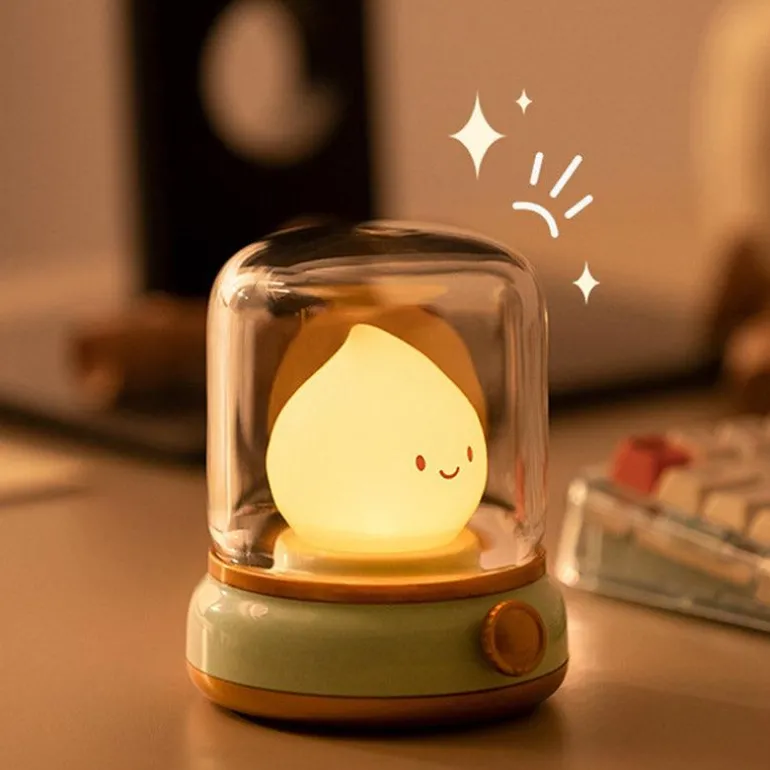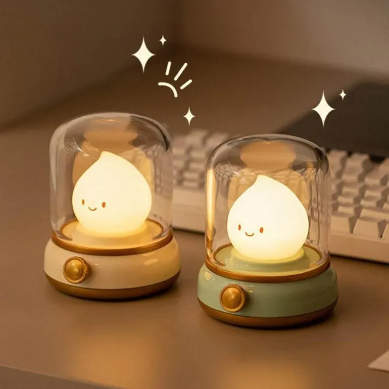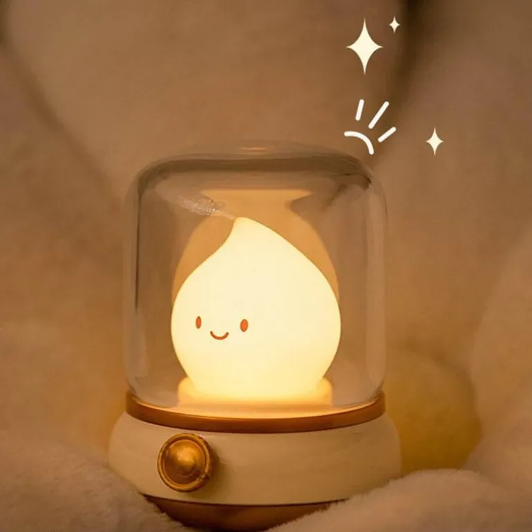 Erhellen Sie Ihren Raum mit unserem charmanten Retro-Flammen-Nachtlicht, das die einladende Atmosphäre einer Vintage-Öllampe einfängt. Diese kompakte, per USB aufladbare Lampe verfügt über stufenloses Dimmen und eine praktische Timerfunktion. Damit schafft sie eine sanfte, gemütliche Atmosphäre an Ihrem Bett und schont gleichzeitig Ihre Augen bei nächtlicher Nutzung.