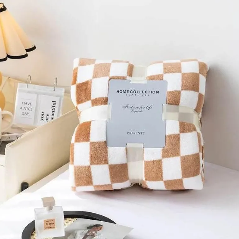 Ob über einem Stuhl drapiert oder auf Ihrem Bett – diese Decke verbindet Funktionalität mit Retro-Ästhetik. Genießen Sie Komfort und Stil mit der Retro-Schachbrett-Überwurfdecke – eine praktische Lösung zur Verschönerung Ihres Zuhauses. Entdecken Sie mehr bei Decor .