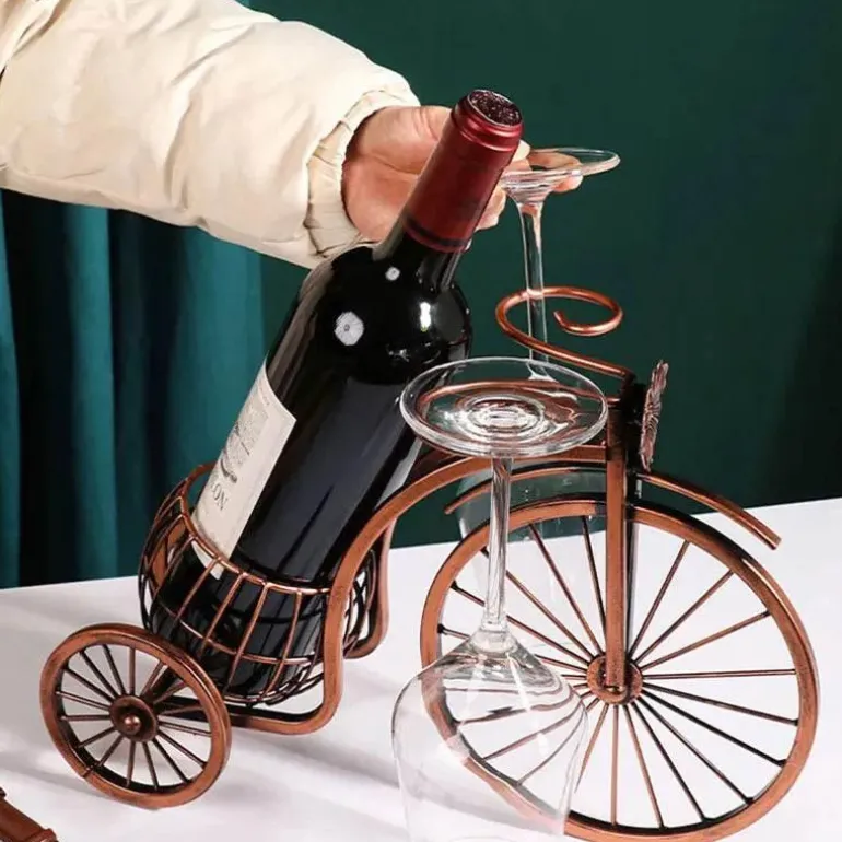 Entdecken Sie die harmonische Verbindung von Eleganz und Funktionalität mit unserem Retro Carriage Weinregal und Glashalter. Dieser exquisit gefertigte Organizer verschönert nicht nur Ihre Tischdekoration, sondern bietet auch eine effektive Lösung zur Aufbewahrung Ihrer Lieblingsweine und Stielgläser und macht ihn zu einem atemberaubenden Blickfang in Ihrem Zuhause.