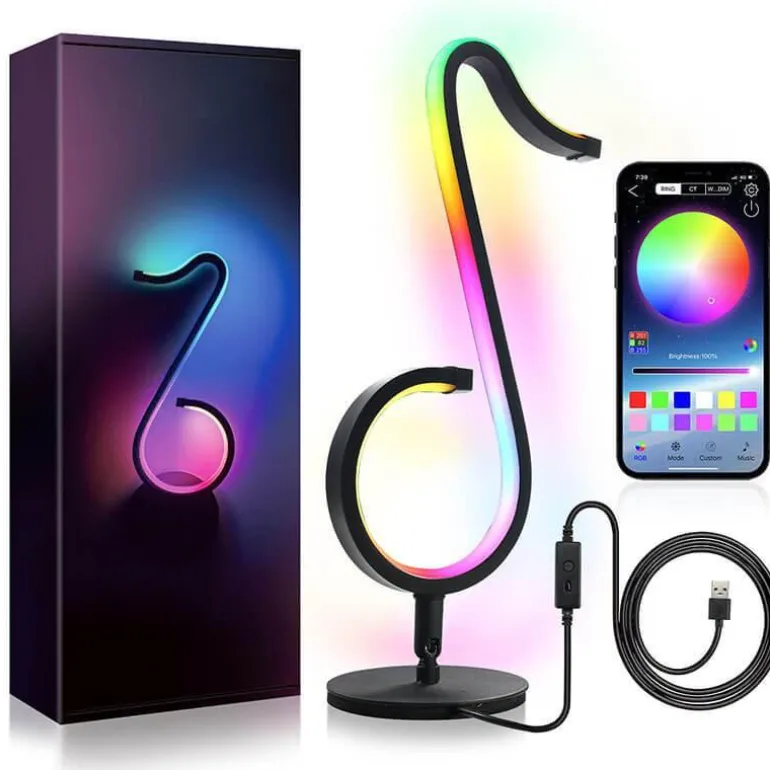 Verwandeln Sie Ihren Raum mit der Music Note RGB Symphony Schreibtischleuchte, einer unverwechselbaren Tischleuchte, die künstlerisches Design mit praktischer Funktionalität verbindet. Die Lampe aus robustem Aluminium und Eisen besticht durch ihr verspieltes, von Musiknoten inspiriertes Design und ist ideal, um in jedem Raum eine lebendige und rhythmische Atmosphäre zu schaffen.