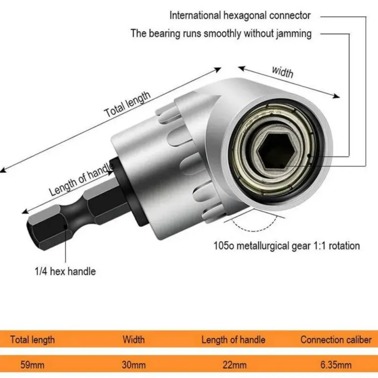 The 360-Degree Right Angle Drill Attachment is an indispensable tool for accessing tight spaces with ease. This innovative extension connects effortlessly to electric drills, rechargeable drills, or manual wrenches, allowing you to navigate into narrow areas that are often difficult to reach. With this attachment, you can smoothly twist screws and elevate your drilling capabilities.